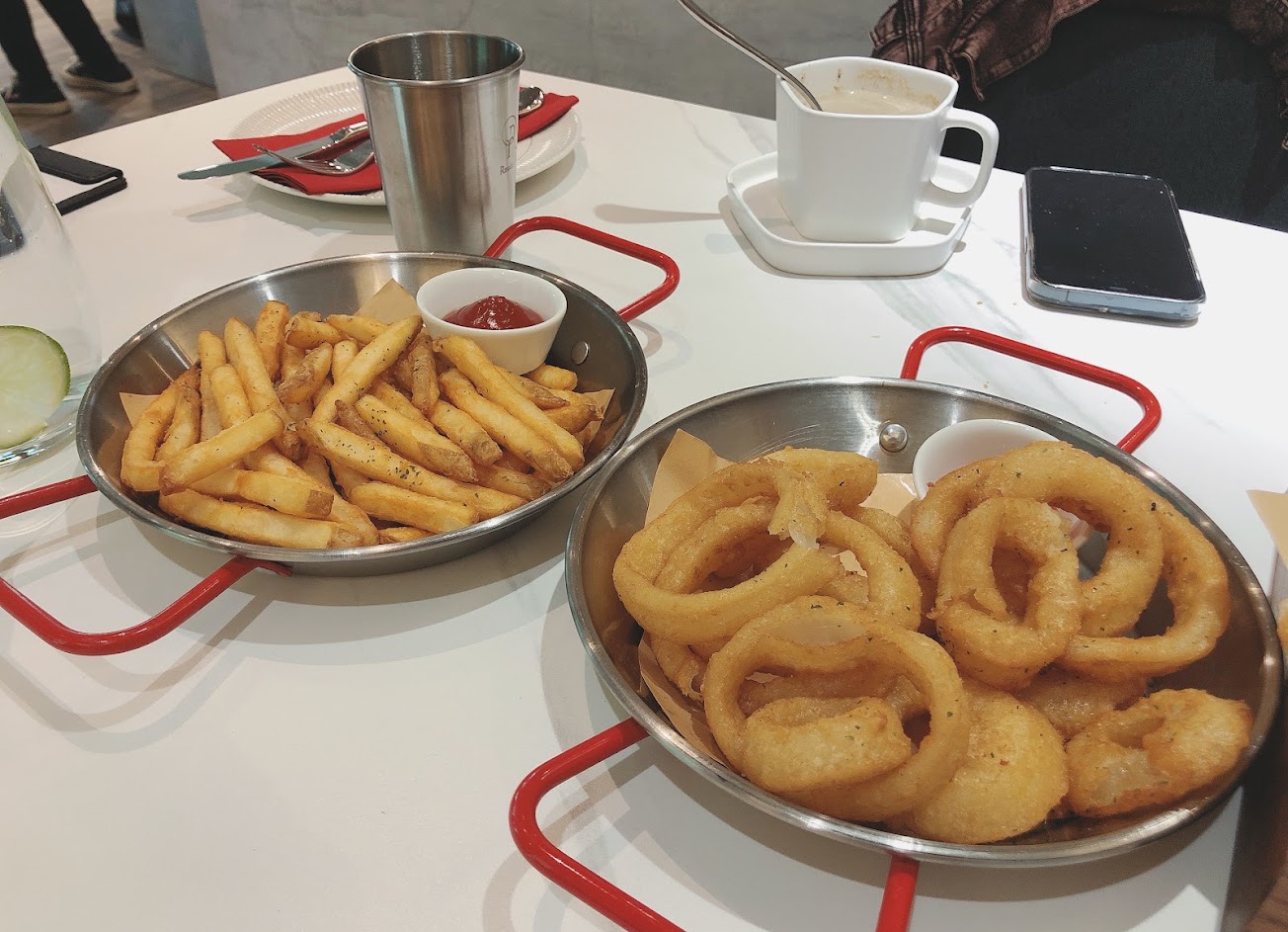 炸物拼盤,薯條酥脆好吃,雞翅軟嫩入味,洋蔥圈有厚度,好像有加起士。