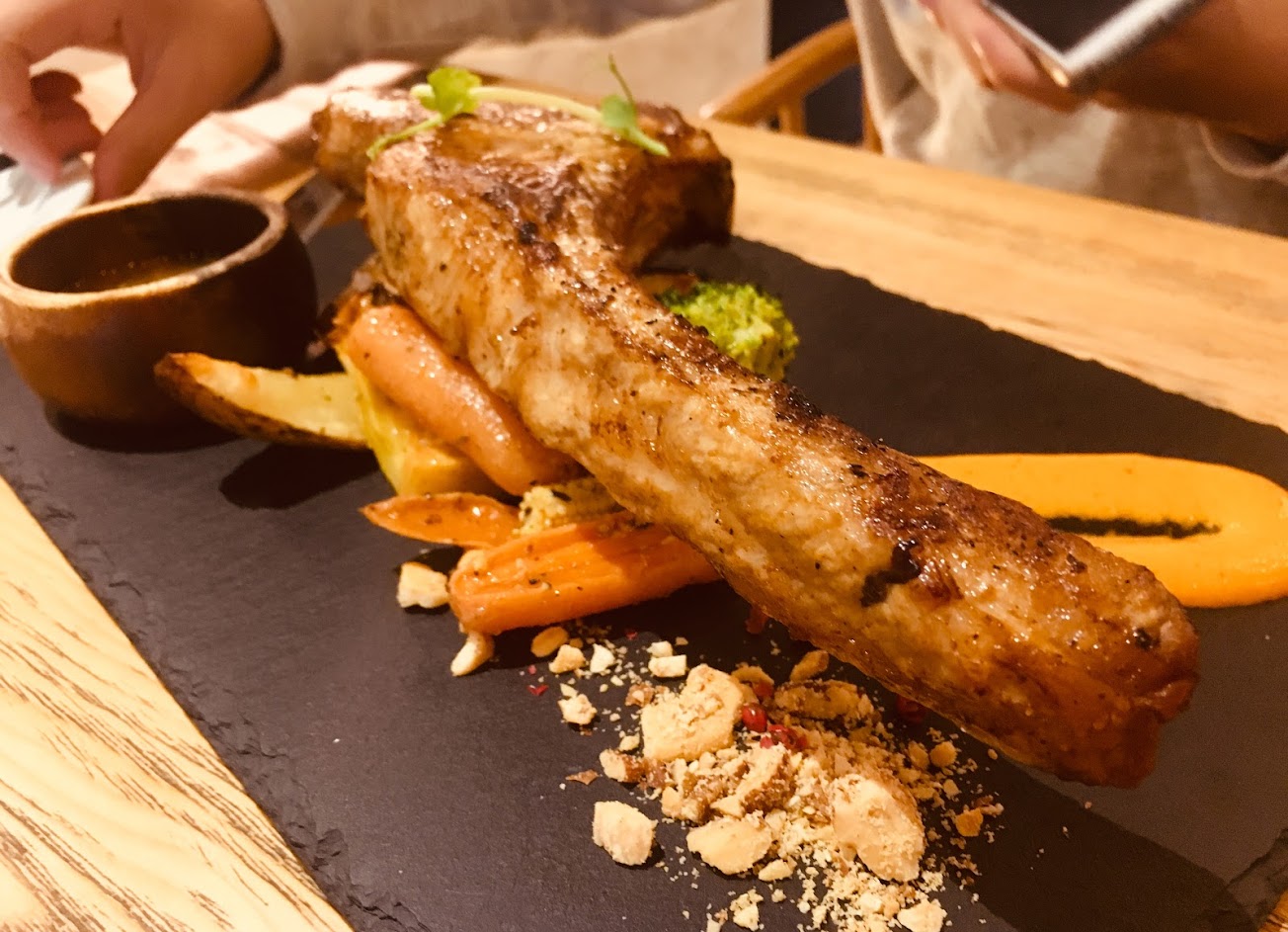 這次同桌友人分別點了羊小排、燉牛肉、伊比利豬,最後就是這道戰斧豬排!