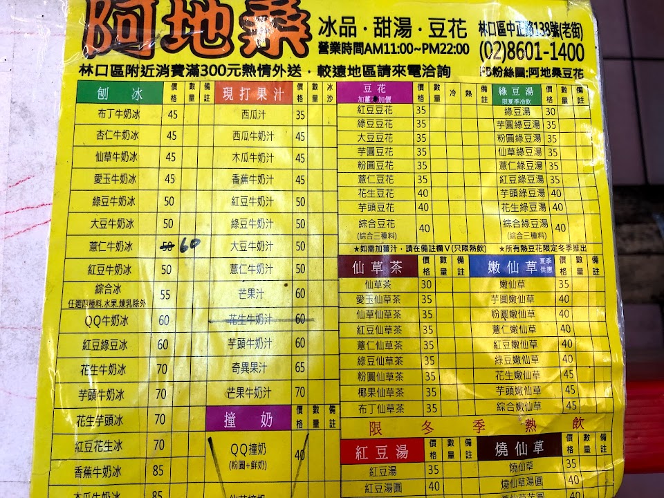 2024最新在地推薦餐廳的菜單_阿地桑豆花的菜單、圖片