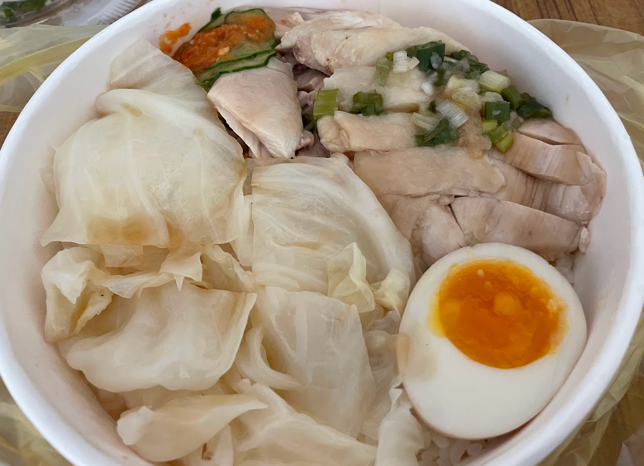 路過想說沒吃過買回家吃吃看,吃了一口驚為天人趕快補拍照,真的很好吃,跟新加坡的很像也不貴一個雞飯90元可以接受,辣椒也是道地的那種味道,再加上蔥油,真的很好吃? …