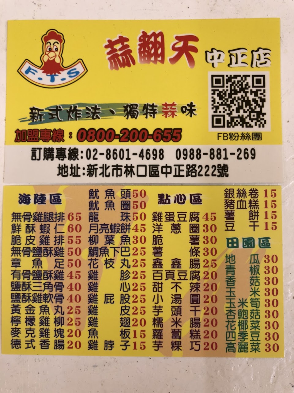 2024最新在地推薦餐廳的菜單_蒜翻天鹽酥雞 中正店的菜單、圖片
