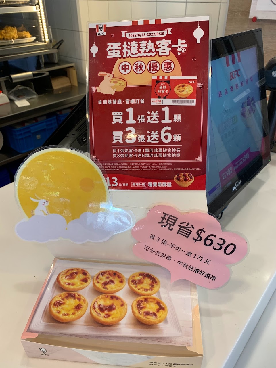內用外帶再讓我選的話,外帶點餐服務人員,服務真的好,肯德基的蛋塔便宜又好吃,謝謝喔。