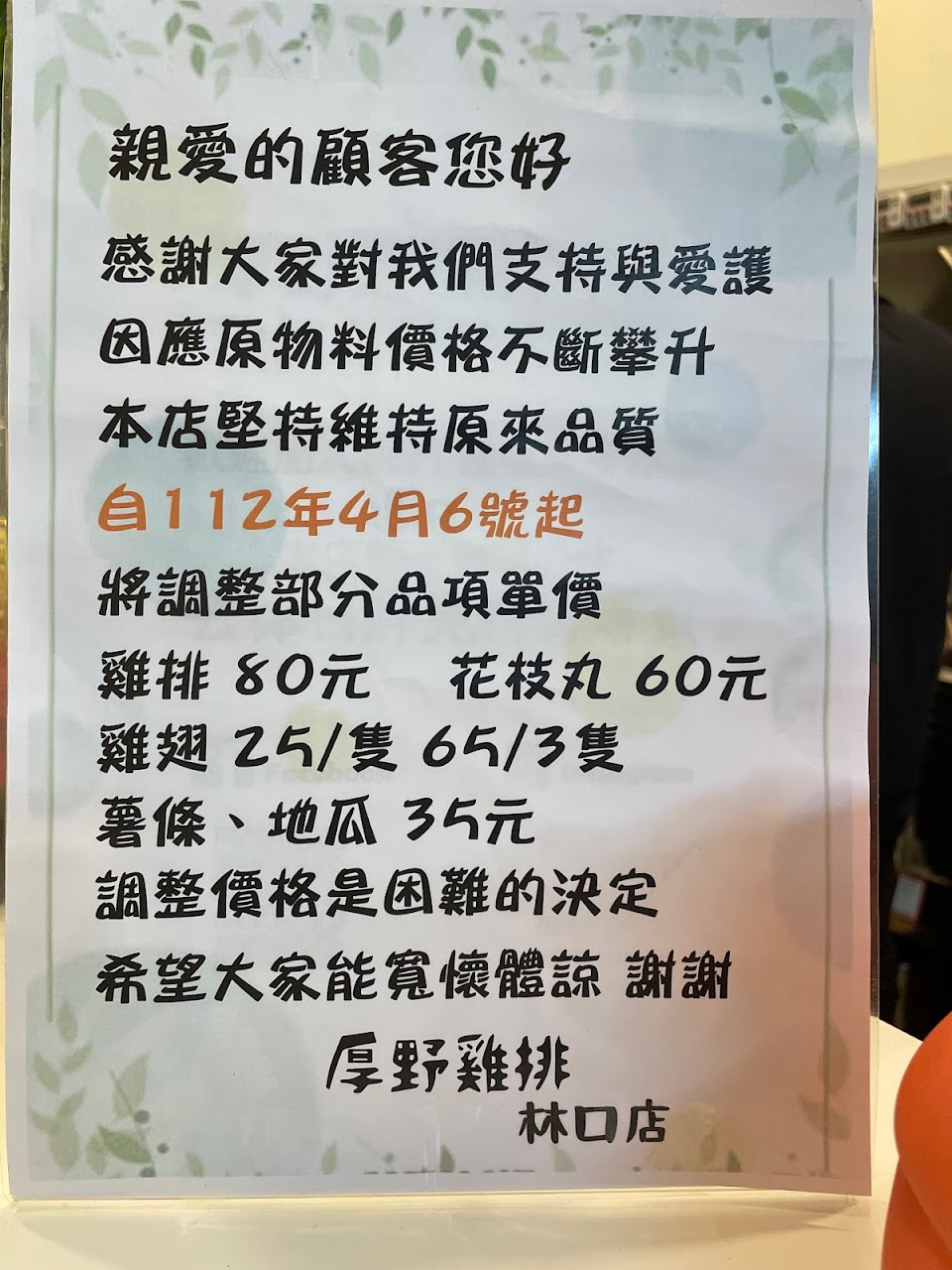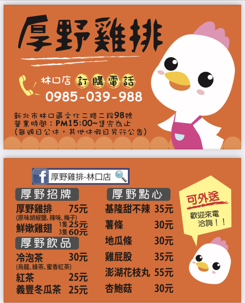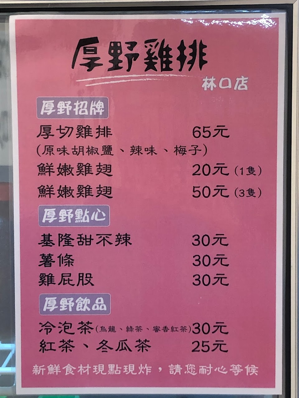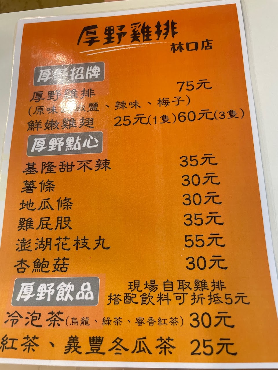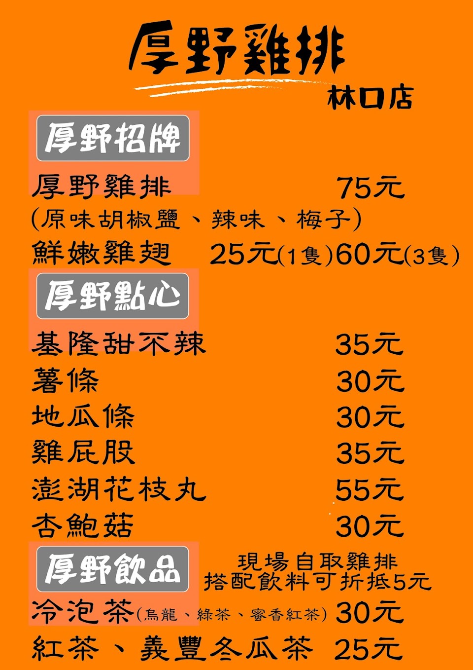 2024最新在地推薦餐廳的菜單_厚野雞排 林口店的菜單、圖片