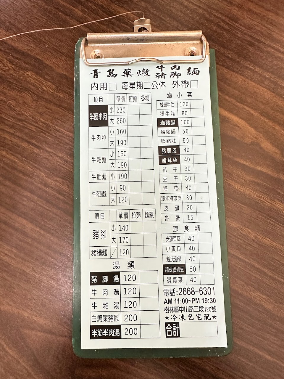 2024最新在地推薦餐廳的菜單_青島藥燉牛肉麵的菜單、圖片