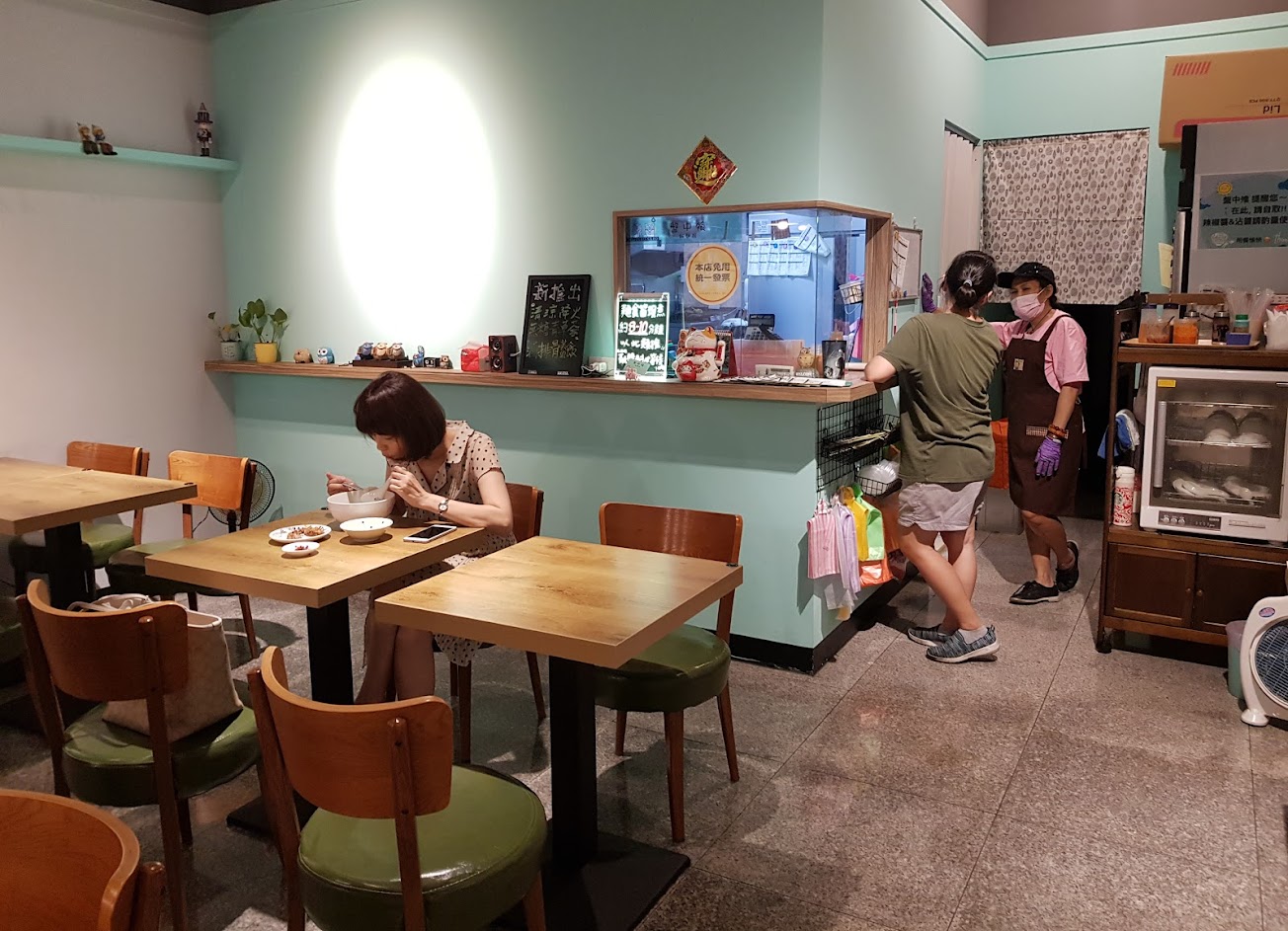 在大馬路上,人行道前有機車位可停,店內座位大約不超過20個,用餐時間人數較多,所以要稍微等待些,食物不錯吃,店內氣氛也不錯。