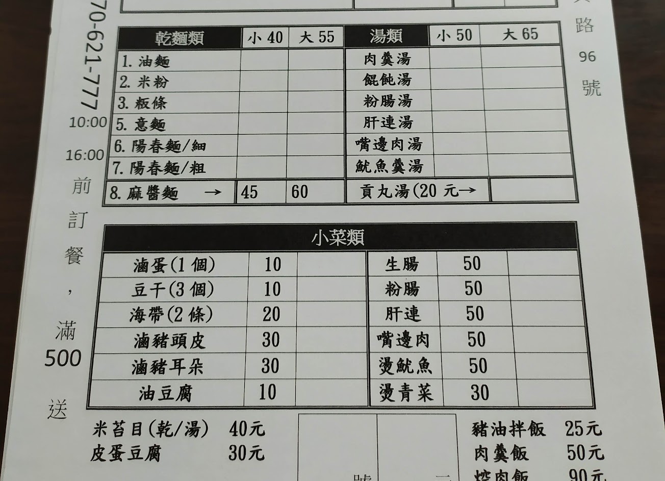 米粉湯40元、豆干20元 、豬耳朵30元