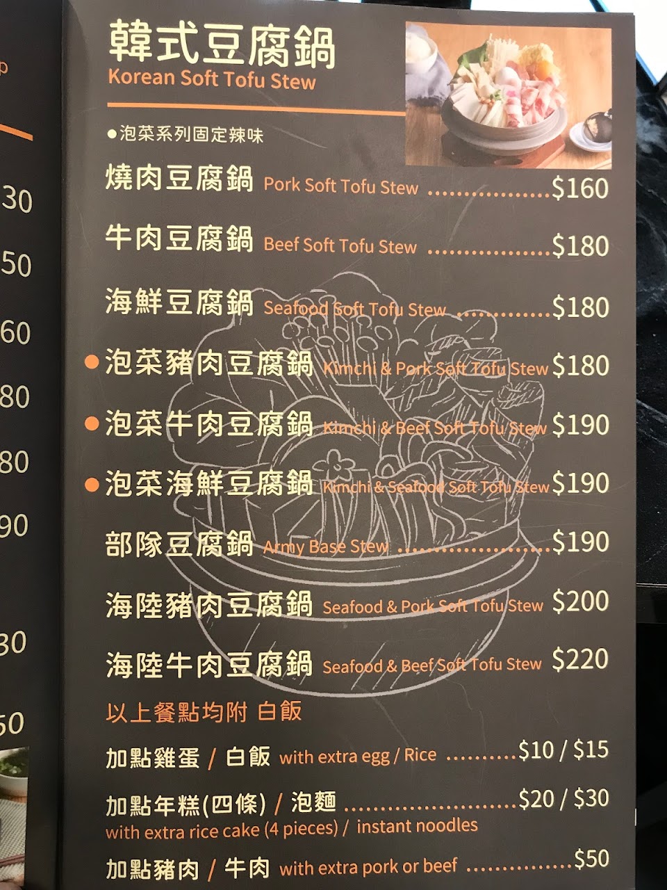點了牛肉拌飯(NT.190元)、泡菜豬肉豆腐鍋(NT.190元)。