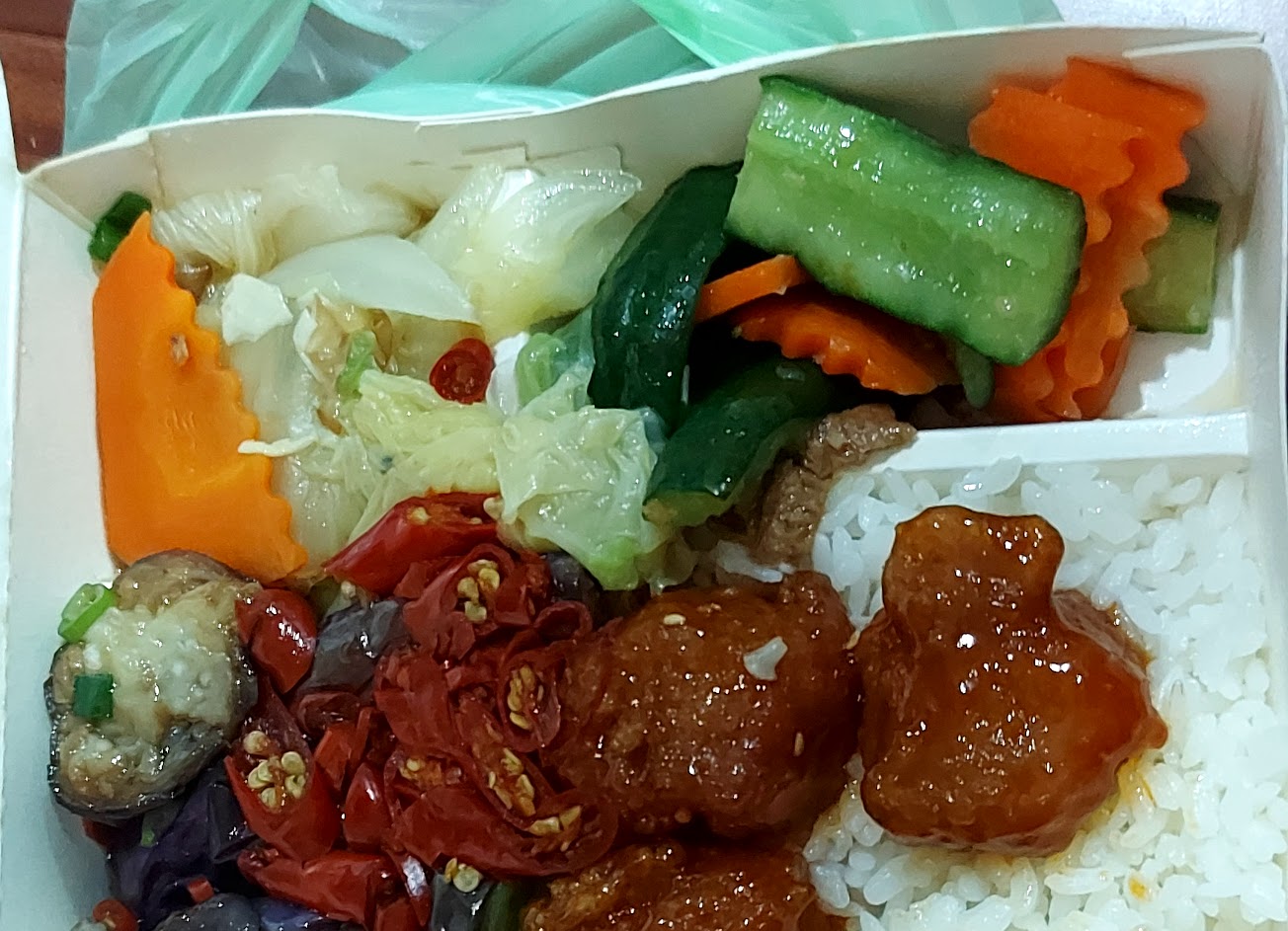 午餐買回家不到五分鐘的距離,本來期待要吃結果飯是冷的硬的,品質原本很好的現在吃到這樣的品質大失所望。