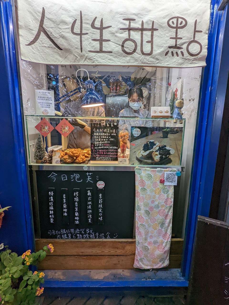 意外發現的小舖(原本是硬皮紅豆餅),有幾組人在排正等著出爐想必是人氣店,看見手寫菜單就會心動的我,點了招牌特濃珍珠奶茶泡芙$70和香草?蘭姆酒泡芙$65,老闆告知等待約10分鐘,態度親切,回家後跟孩子晚餐後享用,可能放置過久(常溫但天冷)泡芙餅皮有些硬還是快速完食了,蘭姆的酒香不明顯。現金交易only。 …