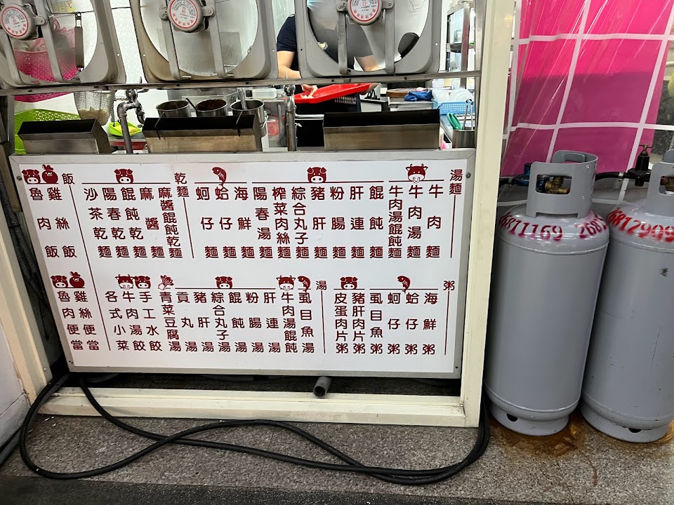麻醬麵 牛肉湯餛飩麵 蛤蜊粥 燙地瓜葉 嘴邊肉