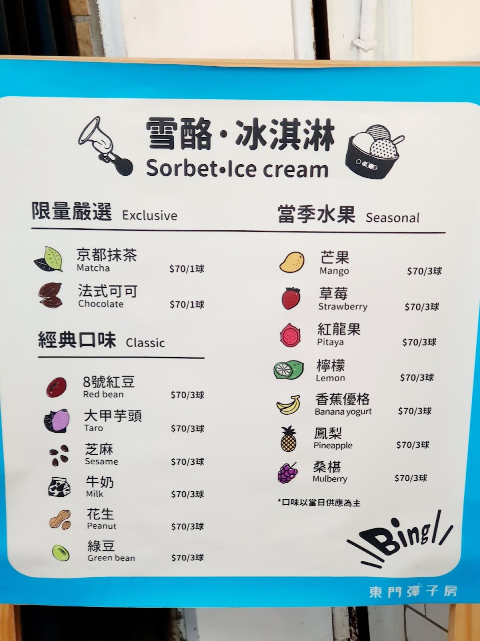 牆壁上會寫今天有哪些口味