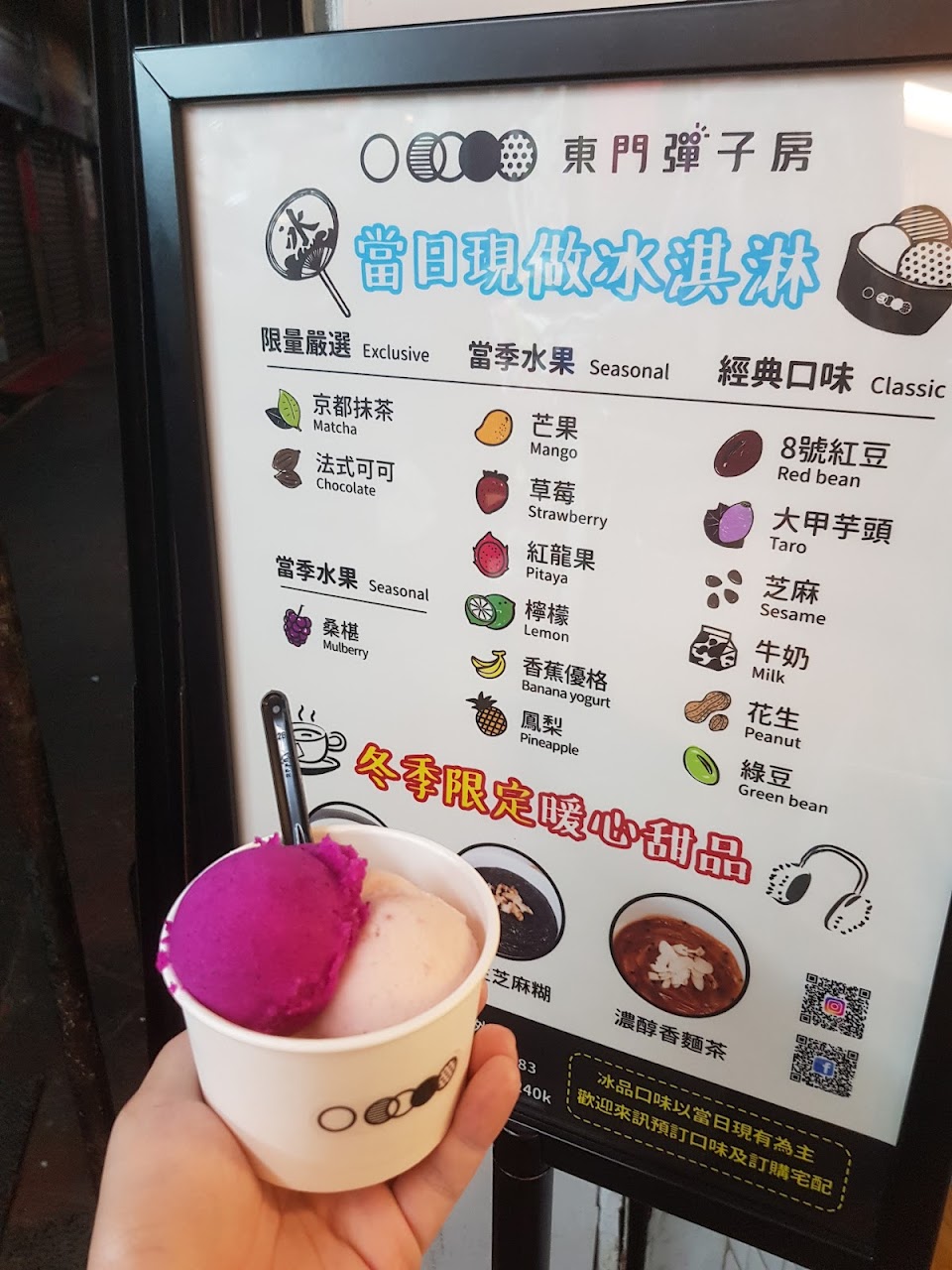 有少數內用但沒有冷氣,芝麻口味超讚,好好吃喔。用優惠券買兩球太划算了。