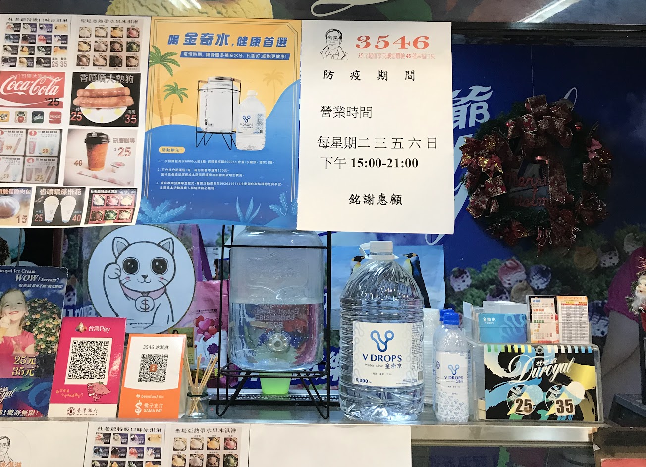 有設自動販售機,可以先看自己想點的加總先買卷,老闆就不會接觸錢,避免接觸也更衛生~ 冰淇淋很超值~單球25雙球35, 目前因為疫情期間沒有提供餅乾只有杯裝,希望之後有機會回到餅乾