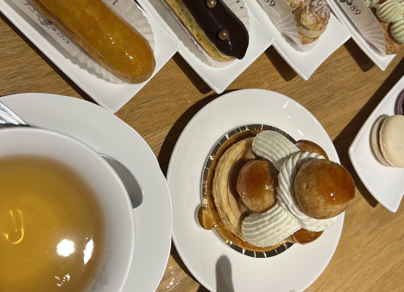 點了榛果閃電泡芙、櫻桃可頌、蒙布朗