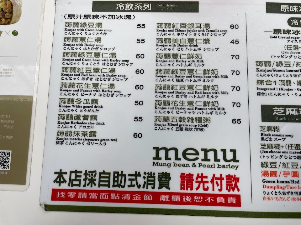 推薦豆花綜合,一次可以吃到薏仁、竘蒻和綠豆三種食材,微甜不膩。