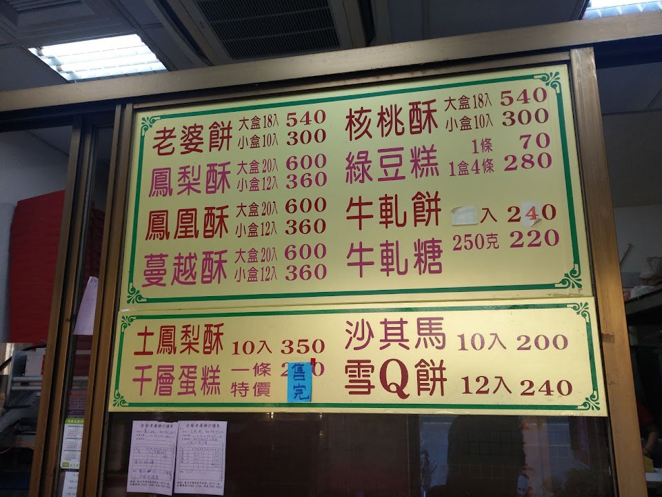 店面看起來很舊 但衝著一片好評就買了 結果他媽的實在有夠好吃啊!! 老婆餅內餡有點像麻糬,外皮一點也不乾,不是很白很厚很會掉屑的那種(當然還是會掉啦),討厭這種酥皮類的人也會喜歡! 雖然很難形容到底好吃在哪裡,但就是好吃到希望現在就是過年 想要買一堆送給別人! 鳳凰酥也好吃,就是如果有一本鳳凰酥教科書,那這個就會在那教科書上!