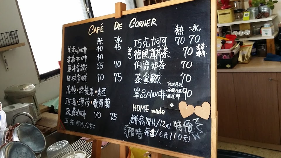 初認識老闆是七年前的事了,當初為了等小孩畫畫結束,等待時間中會到處找個咖啡店小歇一下,順便品嚐各種飲品。位在咖啡店林立的一級戰區,想找個CP質高的Cofee實屬不易。無意間踏進Cofe de Corner,初嚐老闆手沖的耶加雪菲,剛入口的微酸感,與接下來口腔中舌尾溢出的巧克力回甘尾韻,實在讓人驚艷。老闆還會不吝嗇的教導如何沖泡單品咖啡的秘訣,就這樣從顧客成了聊咖啡的好友,接下來的七年是從不間斷的咖啡豆回購。