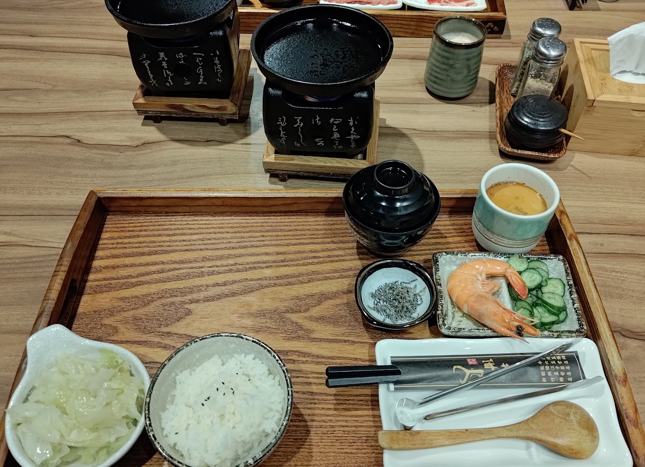 ?高麗菜?炒起來偏油偏水 還有一堆蒜末 ?小黃瓜?醃製味很重 需小口小口的配著吃 ?白蝦?酒下去泡製酒味超重 吃一口就不太行 ?味增湯?洋蔥片沒有煮爛 兩人都不太喜歡 ?茶碗蒸?沒有蛋香味 也都不太喜歡