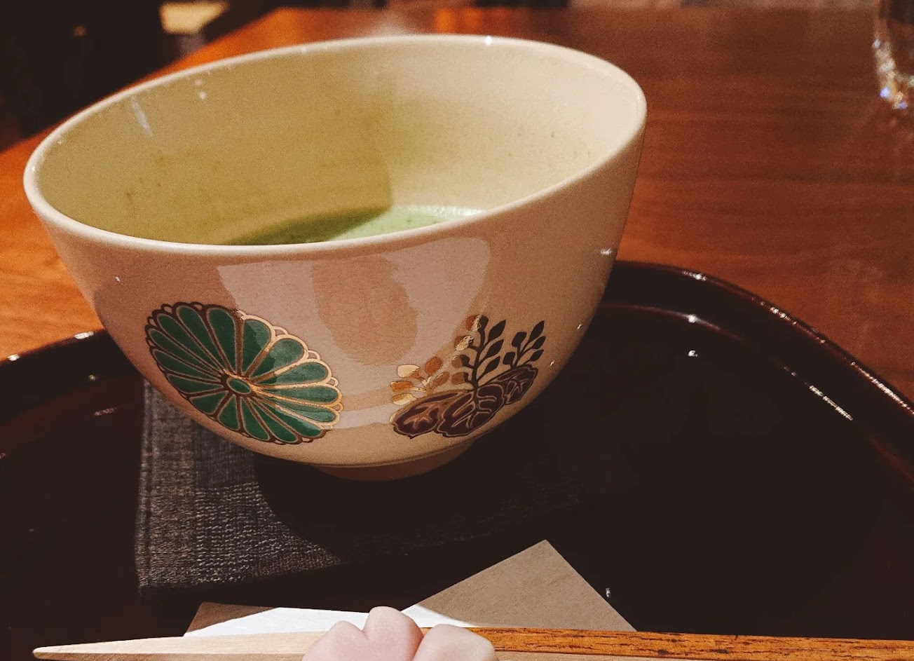 當天兩碗茶分別點了天授跟金輪濃茶,一起喝就立刻知道天授的好。金輪已經比我之前買過的和光好了,但是和天授一比,澀味立刻就出現了。天授非常好入口,完全沒有澀味,想必是非常用心挑選出來的茶葉。