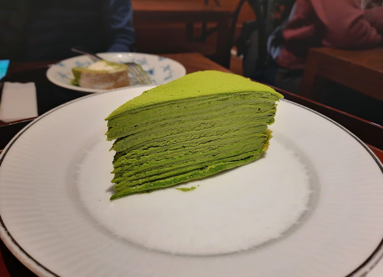 濃郁有誠意的千層抹茶蛋糕,現場氣氛溫暖舒適,非常適合帶朋友來小聚。