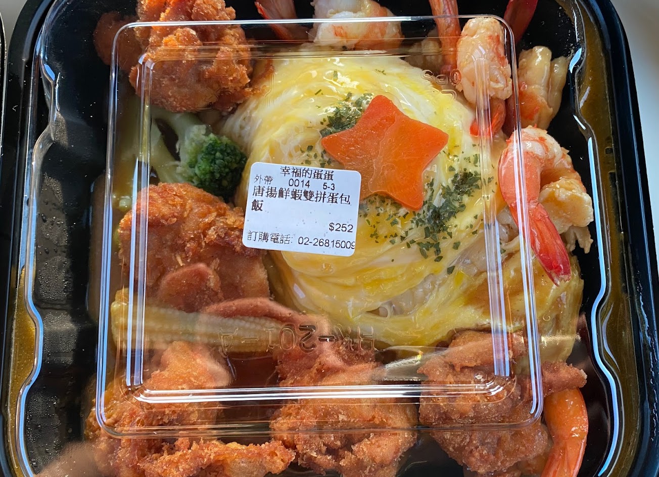 餐點都採現做,故需要稍作等待,我點的是唐揚雞塊+鮮蝦蛋包咖哩飯,準備時間差不多需要10-15mins,但美食都是值得等待的!唐揚雞外脆多汁🍖,而且分量也太多😨 再來是鮮蝦🦐,老闆都幫你剝好蝦殼了,我們只要負責吃就好😁咖哩是甜咖哩…搭配半熟的蛋包~整個外觀相當吸睛,我好像在參加大胃王比賽🆚,差點飽到翻過去😝