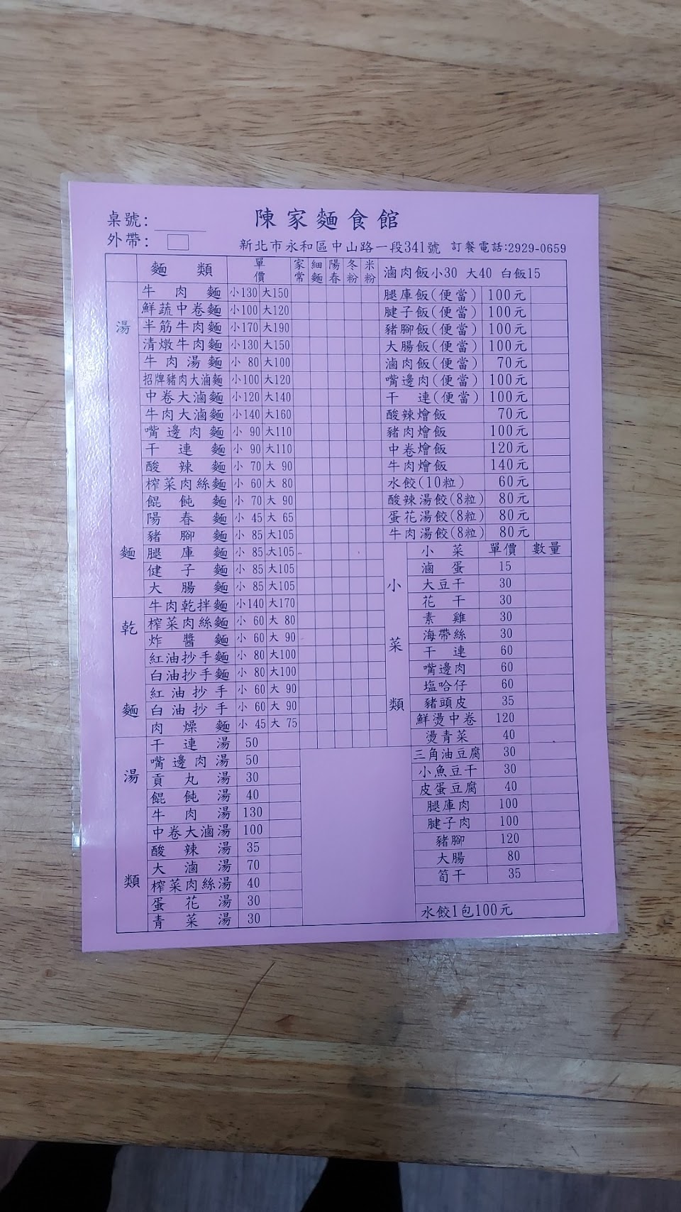 2024最新在地推薦餐廳的菜單_陳家麵食館的菜單、圖片
