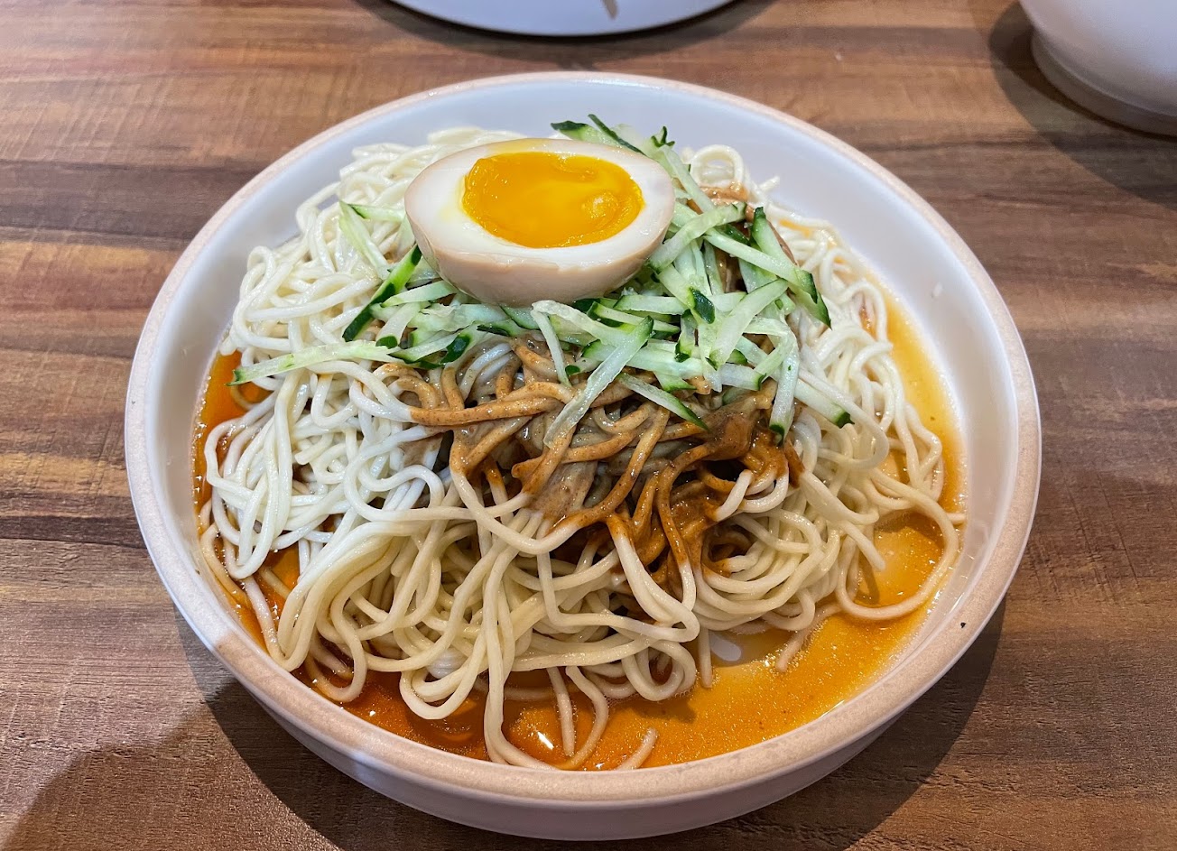 涼麵醬料跟辣醬都不錯 半顆糖心蛋很軟嫩但有一點蛋白沒熟?
