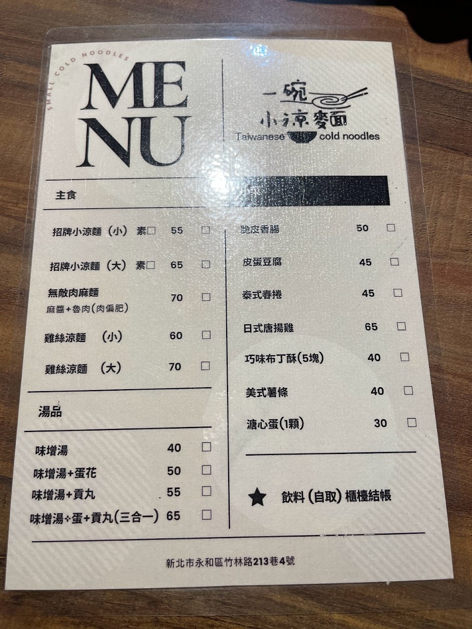 2024最新在地推薦餐廳的菜單_一碗小涼麵(營業時間以臉書Fb 公告為主)的菜單、圖片