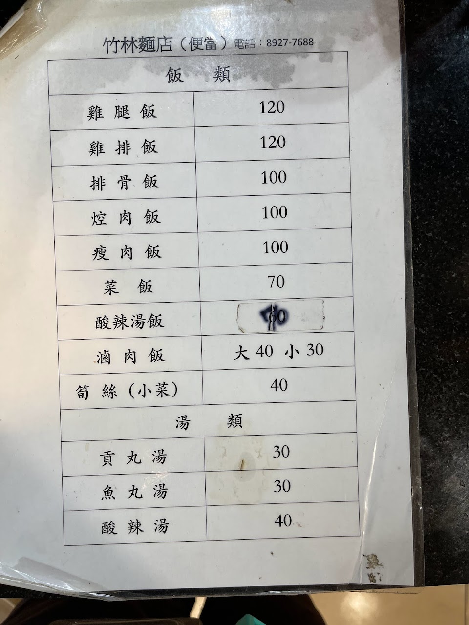 食用餐點:排骨飯、酸辣湯
