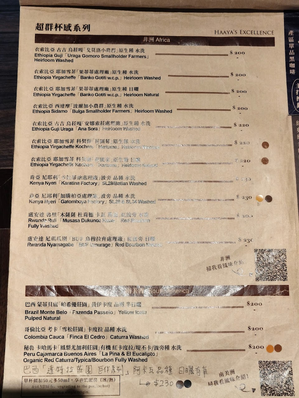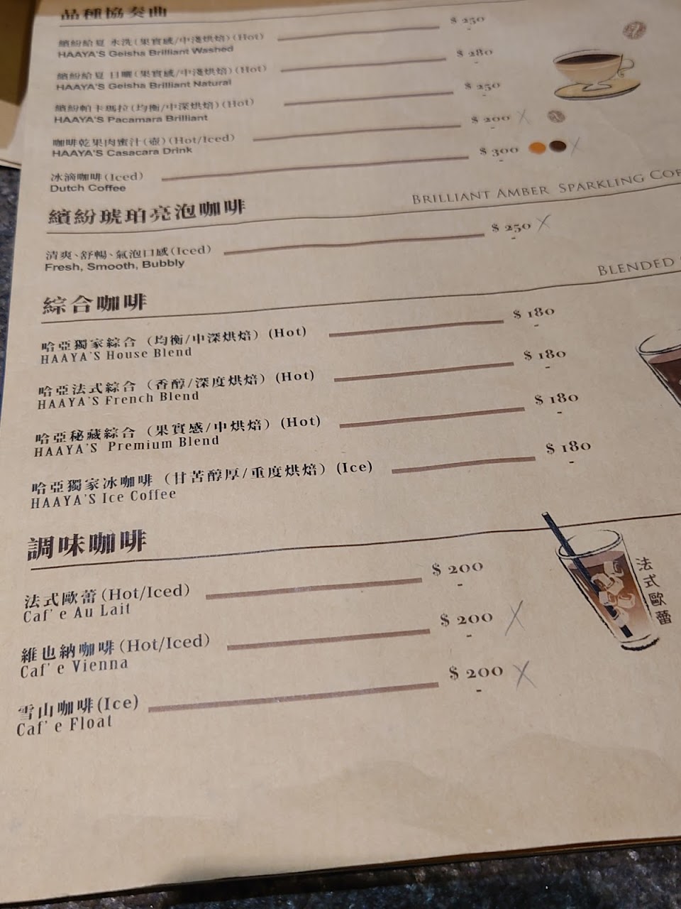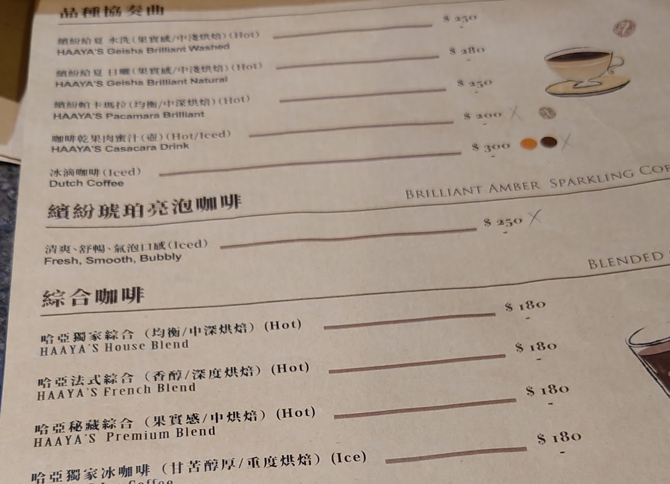 2024最新在地推薦餐廳的菜單_哈亞極品咖啡 HAAYA’S COFFEE-三創店的菜單、圖片