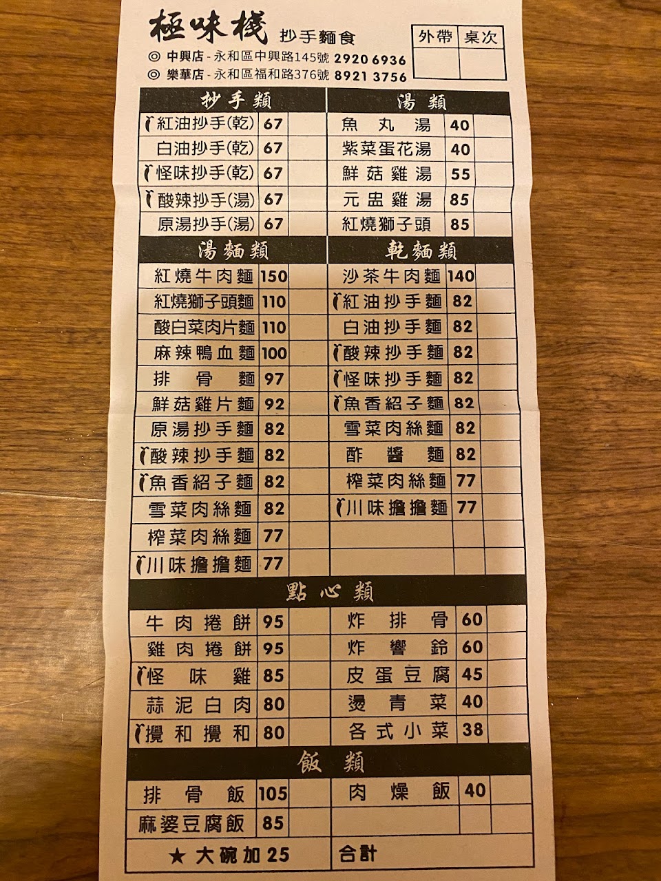 吃超過五年了,慶城店,南京店,竹林店,還是樂華店最好吃,老闆人很親切,魚香哨子必點,點湯的小心太飽,因為魚香哨子的肉末你會一直想把他喝光~ 其他隨意,記得加點魔鬼椒通一下頭皮,樂華店的咖啡紅茶是自取無限續杯的,小菜的話大推炸響鈴,麻辣干絲,豬耳豆干,乾紅油抄手 吃了極味棧你就沒肚子去吃樂華的五大必吃,要考慮清楚