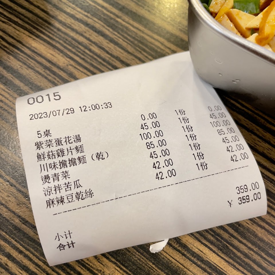 小菜好吃,小黃瓜有點太酸,適合簡單解決一餐。麻婆蓋飯幾乎沒有絞肉,有點失望。抄手麵五顆不小顆的抄手,不過皮頗厚,配的菜量也很少,靠麵吃粗飽的感覺,70元的價位覺得CP值偏低。