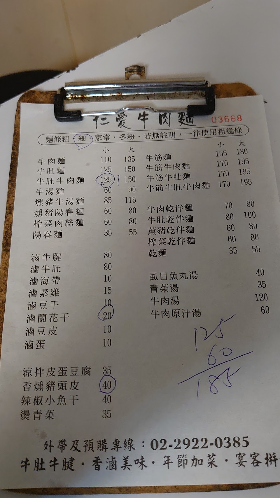 牛肉牛肚麵小碗125元,感覺比單點牛肉麵還划得來,味道屬於比較淡一些的,不會很鹹,小菜價位適中,人很多,總體而言算水準以上。
