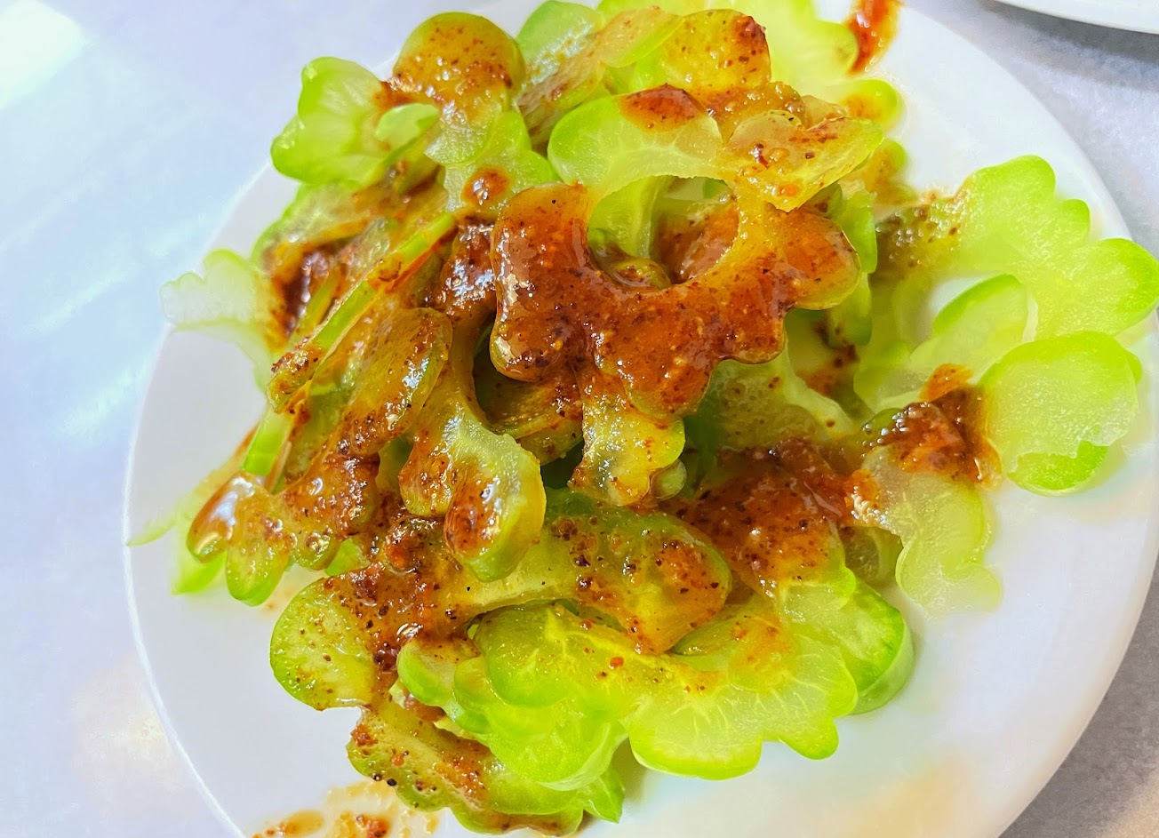 苦瓜跟小菜拼盤都淋上口水雞的醬汁,蠻特別。