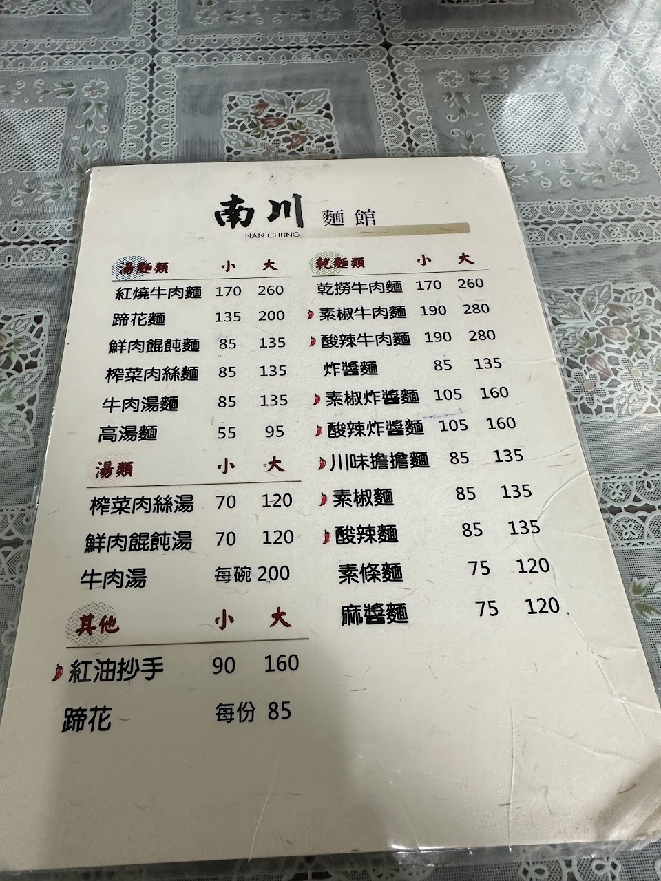 道地的酸辣麵 服務 內用 餐點類型 晚餐 平均每人消費金額 $1-200