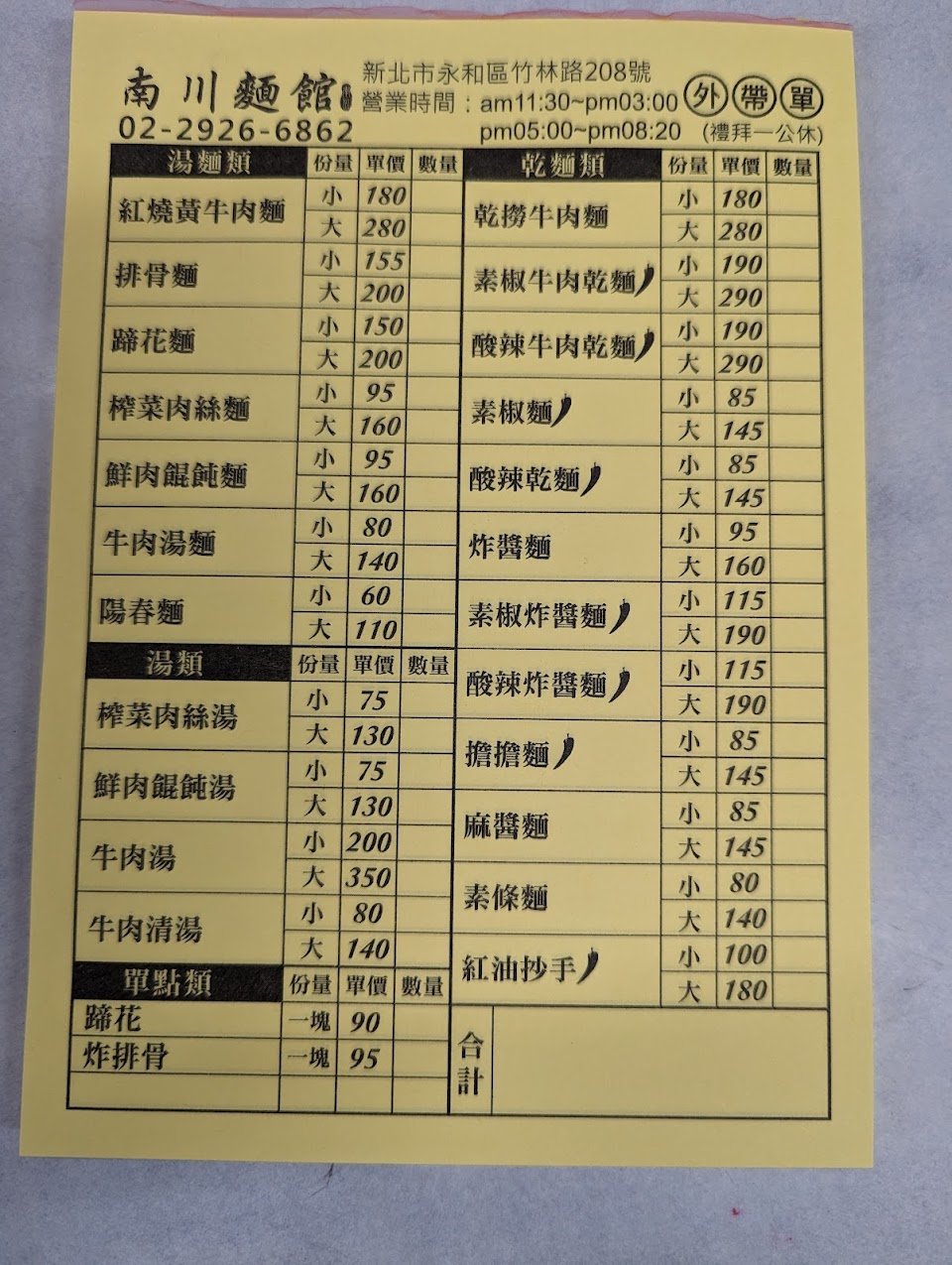 永和人大推 必吃麵館 服務 內用 餐點類型 午餐 平均每人消費金額 $1-200