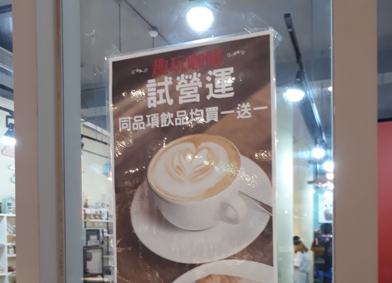 販售飲料(現在同等位飲品買一送一)跟蛋糕(看起來還好)