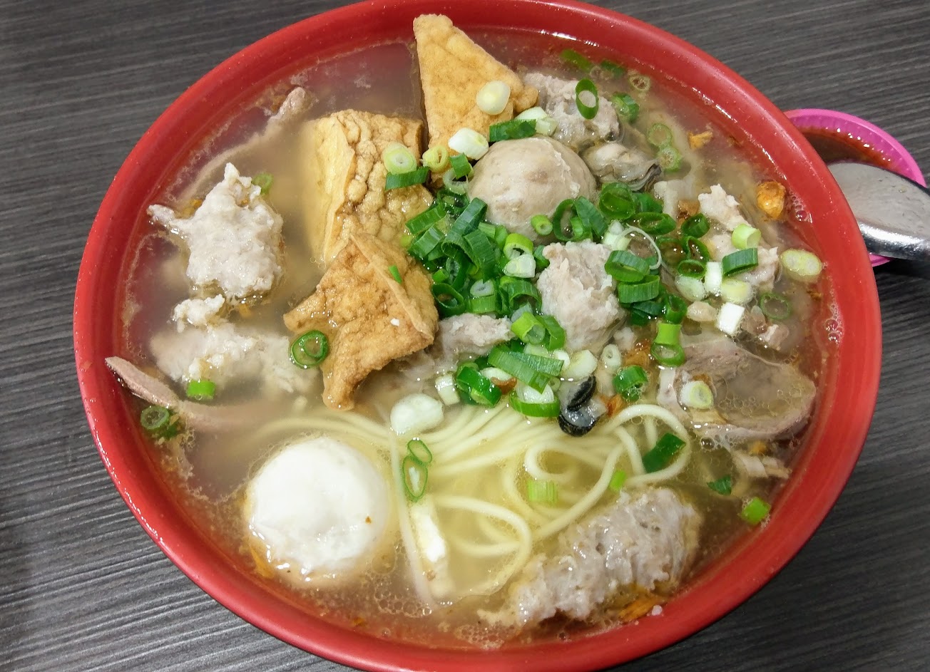 50年老店,從小吃到大。C/P值最高的什錦麵,料多味美,想到就流口水。肉羹、肝璉、油豆腐、蚵仔、豬肝、貢丸、福州丸、滿滿蔥花~