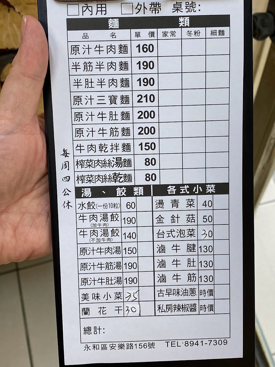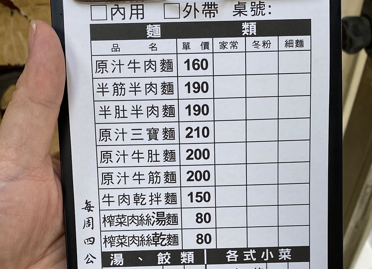 跟家人點了三碗牛肉麵跟各式小菜