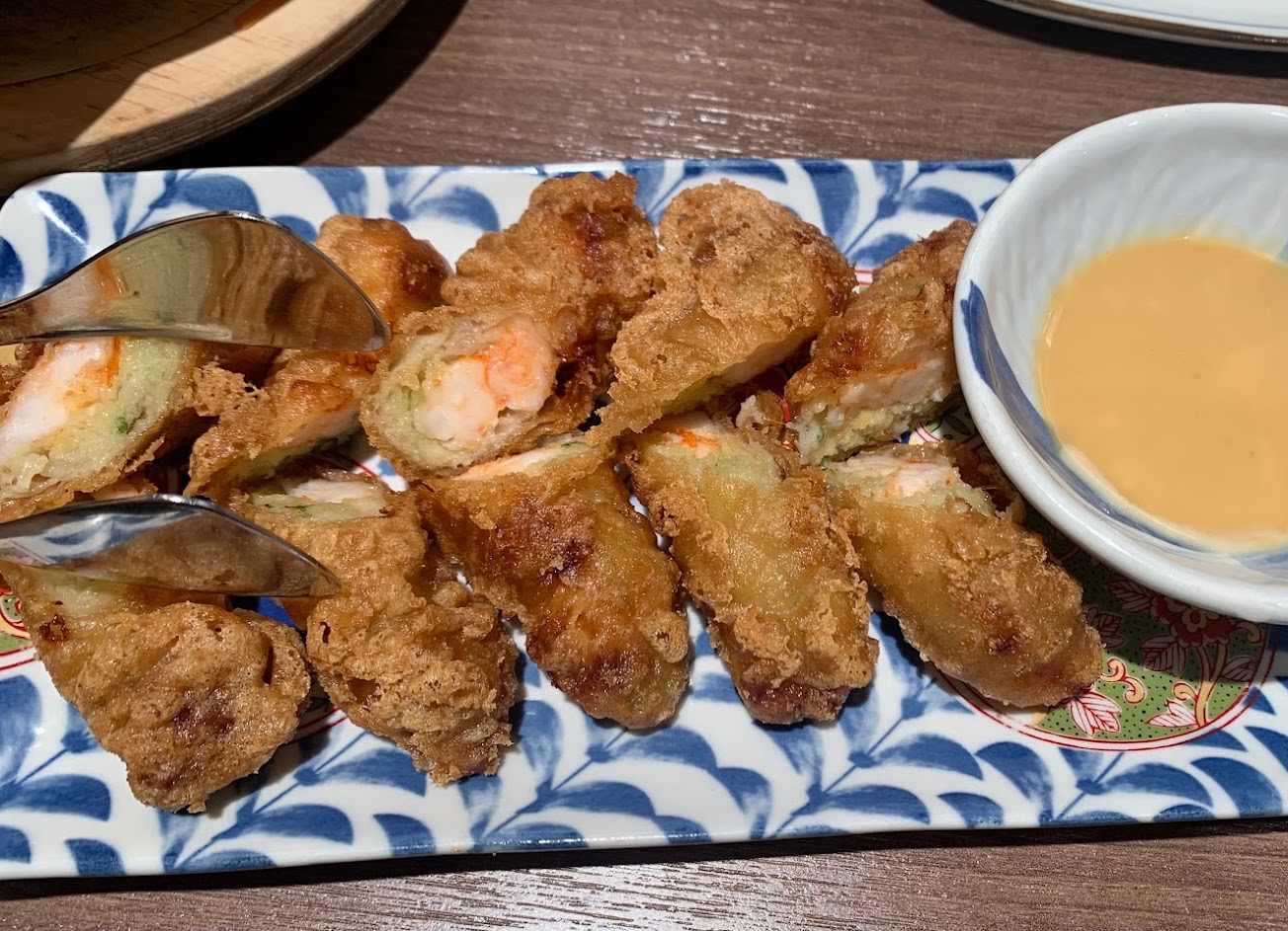 鳳梨蝦球的鳳梨有包裹麵衣配上甜甜的沙拉醬很爽口 …