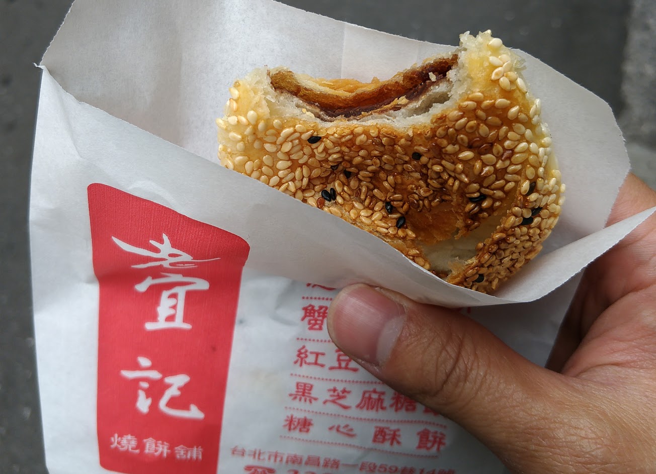 買了蟹殼黃和黑芝麻口味,整體餅皮不錯外層芝麻很多,蟹殼黃還是比較歡萬大那家老宜記味道稍嫌不足,黑芝麻口味就甜甜的不錯吃