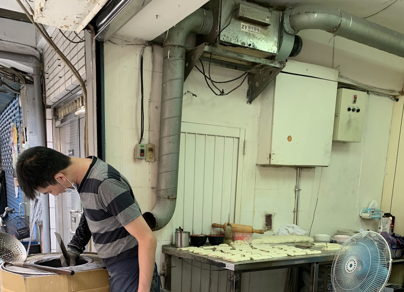 巷弄裡有著小時候老師傅烘烤出來的香酥脆燒餅味.老闆說買回去用烤箱200-250度預熱後關掉開關.讓餘溫慢慢蒙熱.不可直接熱烤否則會燒焦。