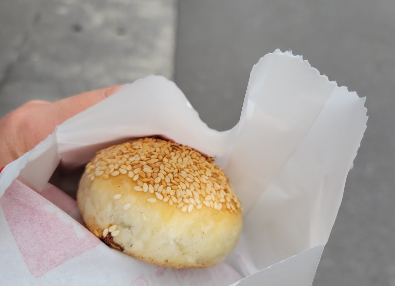 很喜歡吃,路過一定會買蔥燒餅,香!