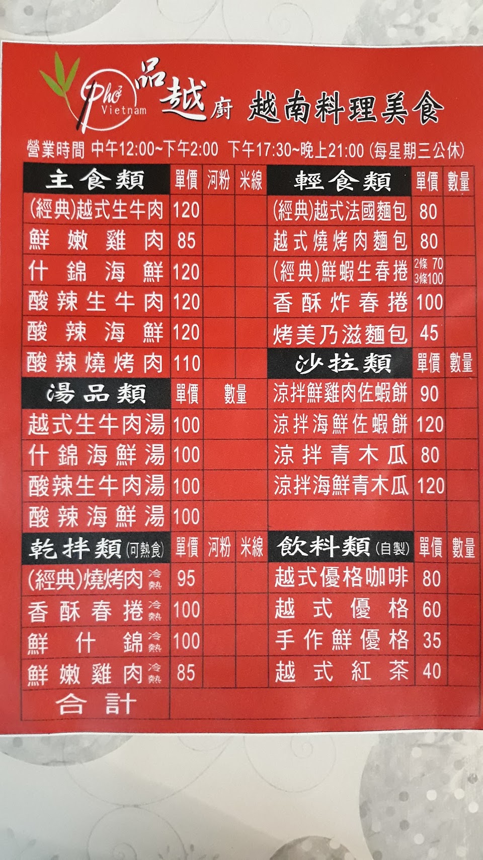 2024最新在地推薦餐廳的菜單_品越廚-越南美食料理的菜單、圖片