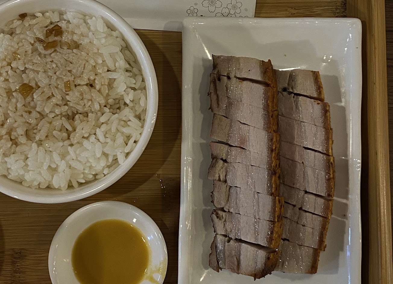 燒肉真的有夠好吃,皮超脆但不會硬,肉很鹹香,可惜當天到的時候只剩半份燒肉,只能點雙拼?叉燒也很優,選半肥半瘦超剛好。雞肉就不推,偏柴而且調味不好吃。