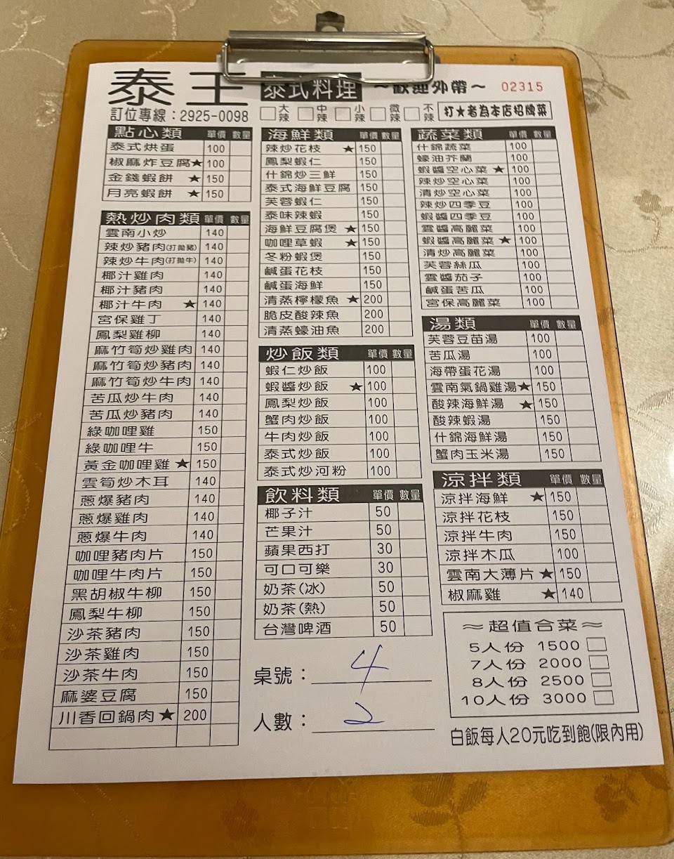 2024最新在地推薦餐廳的菜單_泰王泰式料理餐廳的菜單、圖片