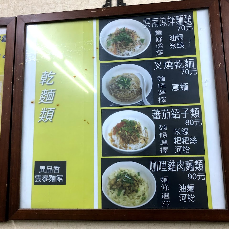 2024最新在地推薦餐廳的菜單_異品香雲泰麵館的菜單、圖片