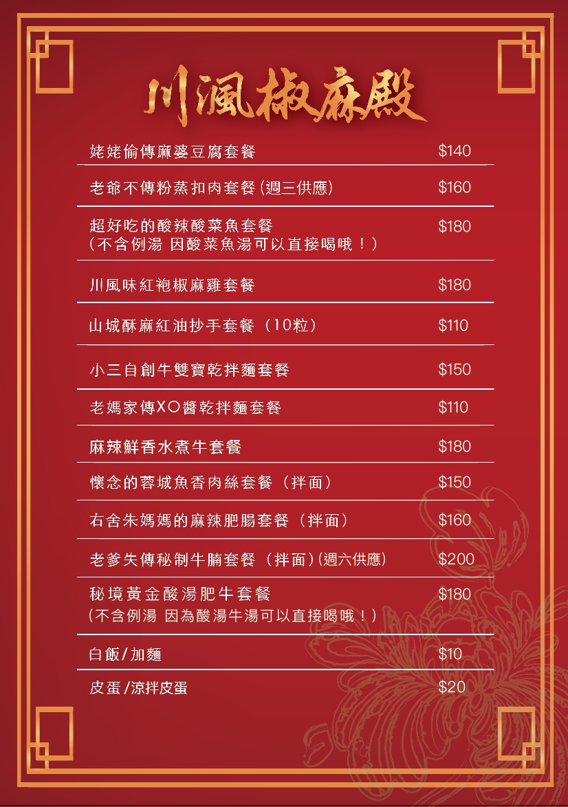 2024最新在地推薦餐廳的菜單_川渢椒麻殿的菜單、圖片