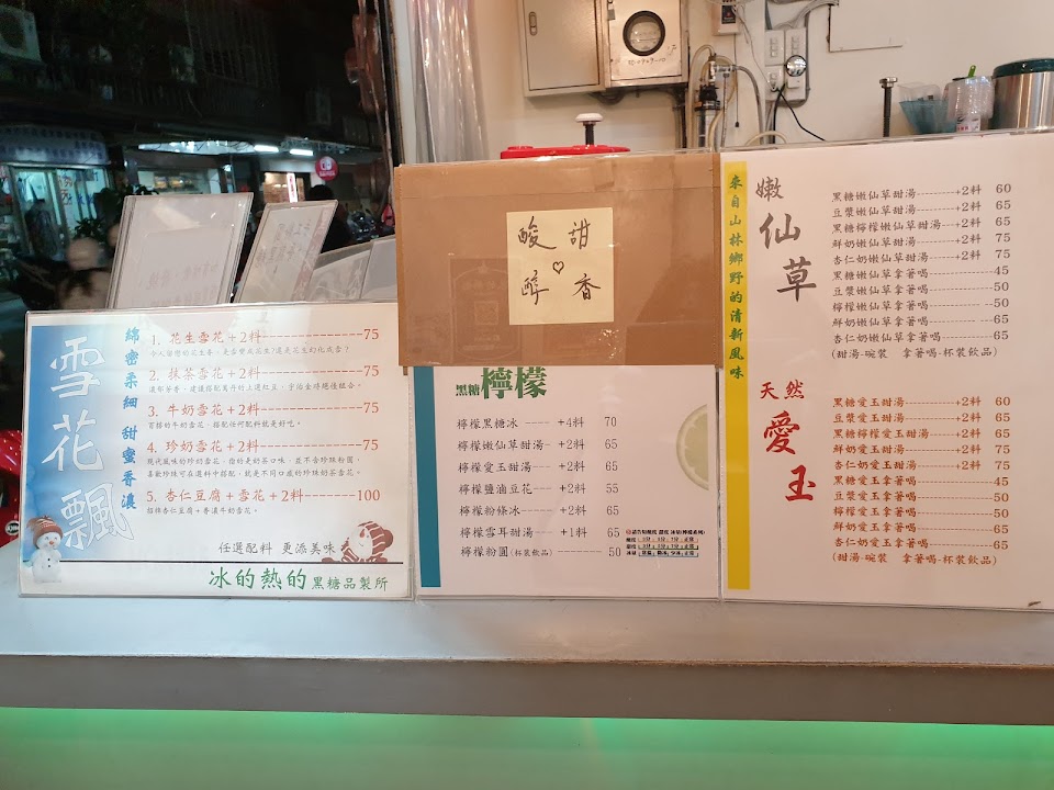 杏仁豆腐、黑糖粉粿都很好吃!地瓜圓跟芋園也很Q,簡單來說,冰品並不特別,店面也不花俏,走的是實在路線,各式配料都挺不錯的,可以感受到老闆的用心。也謝謝老闆對第一次吃的客人特別招待~