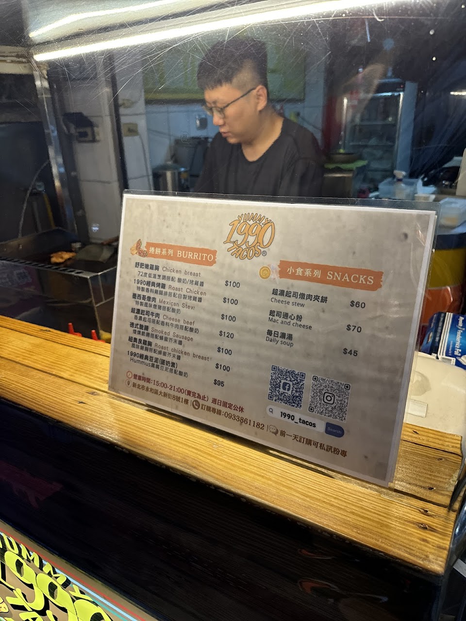 在地圖上看到有墨西哥捲,身為捲控當然必須要嘗試! -1990經典豆泥$90+莎莎醬$20 餅皮老闆說是請別人做的,裡面有:酪梨泥、鷹嘴豆泥、生菜、飯(這天是奶油飯)、起司片(會炙燒過),為了完整地包起來,料都集中在中間而且不能太多不然會包不起來,整個包起來後有點像磚餅。第一次吃到墨西哥捲裡面有包飯,餅皮不是有嚼勁的類型,加價的莎莎醬感覺可能比較適合搭重口味一點的肉類。 服務 外帶 餐點類型 晚餐 平均每人消費金額 $1-200